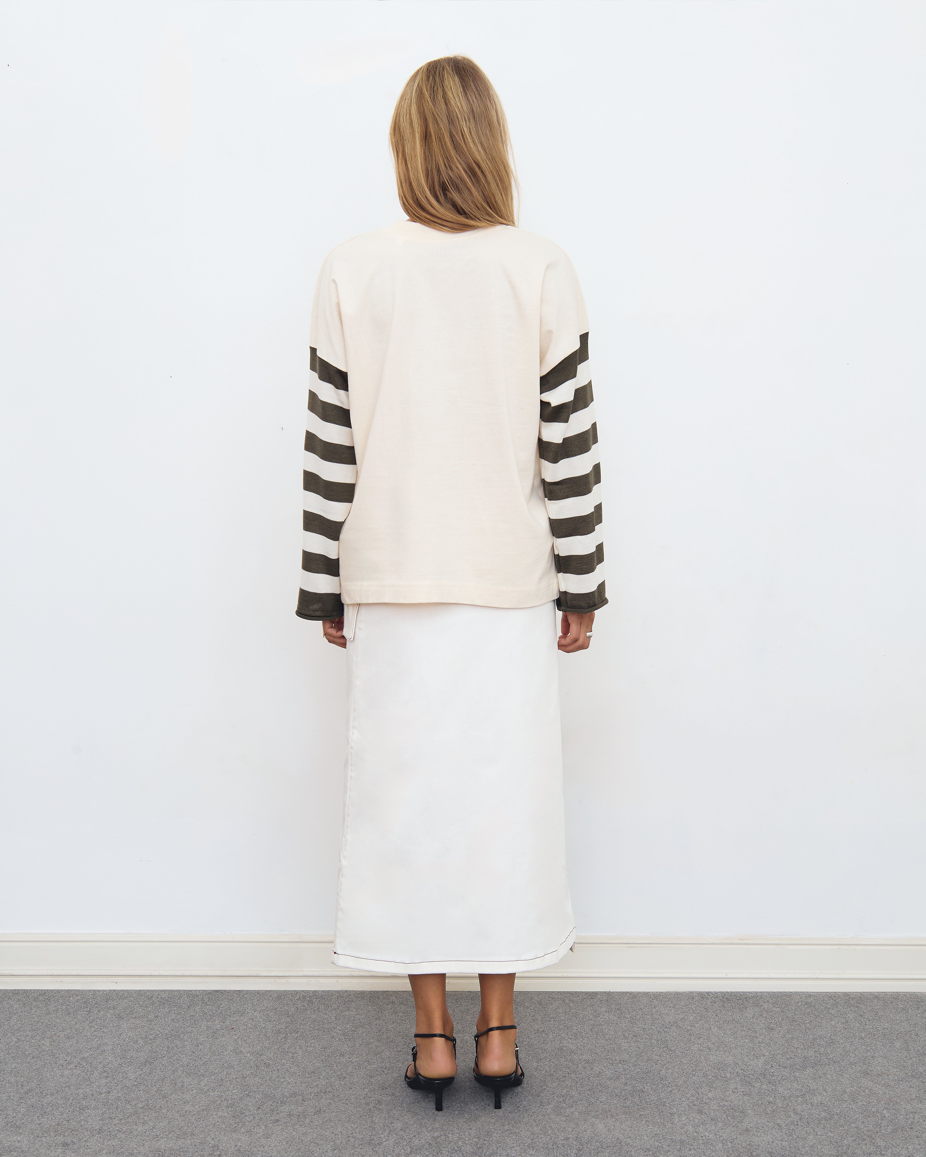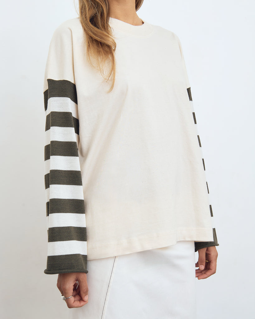 The Kleeve Top has an oversize fit; knitted sleeves and a wide ribbed collar.